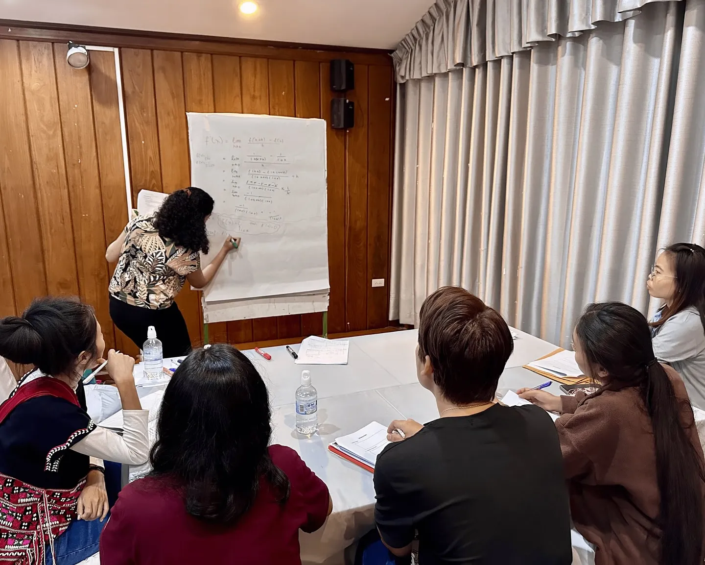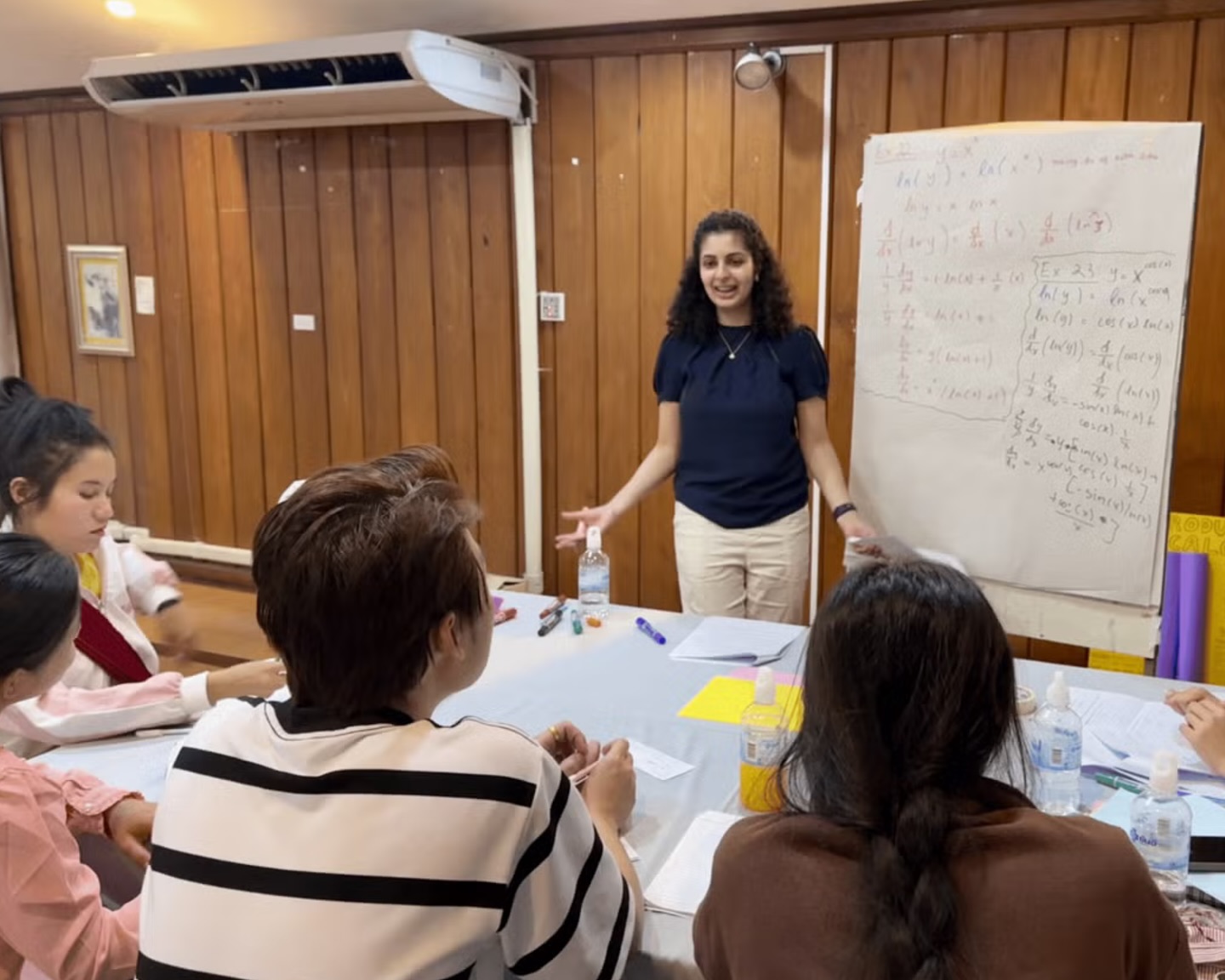 Rewa, a first-year math student, helped lead a ten day calculus workshop for refugee teachers from Myanmar. She worked on lesson plans, created simple teaching materials, and helped format research reports used for outreach and advocacy. Bruce, a business and math double major, built real-time tracking tools to support school enrollment and classroom supplies. He also trained local staff on digital workflows to make daily operations easier.